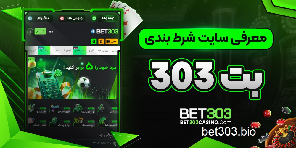 سایت بت 303 یکی از پلتفرم های شناخته شده در زمینه پیش بینی ورزشی و بازی های کازینویی است که با طراحی حرفه ای و امکانات متنوع توانسته توجه بسیاری از کاربران را به خود جلب کند.
